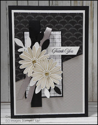 To make it a bit easier for myself I decided to use a colour scheme of Gray Granite, Basic Black and Basic White. I also kept the stamp sets, dies and punches the same through out the cards. The stamp sets I used are Biggest Wish, Art Gallery, Daisy Lane, Celebrating You and Peaceful Moments. The dies and punches I used are Painted Label Dies, Penned Flowers Dies, Layering Circle Dies, Floral Gallery Dies, Stitched Stars Dies, Basic Border Dies, Bough Punch, Medium Daisy Punch and Banners Pick a Punch.