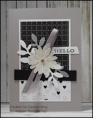 To make it a bit easier for myself I decided to use a colour scheme of Gray Granite, Basic Black and Basic White.  I also kept the stamp sets, dies and punches the same through out the cards.  The stamp sets I used are Biggest Wish, Art Gallery, Daisy Lane, Celebrating You and Peaceful Moments.  The dies and punches I used are Painted Label Dies, Penned Flowers Dies, Layering Circle Dies, Floral Gallery Dies, Stitched Stars Dies, Basic Border Dies, Bough Punch, Medium Daisy Punch and Banners Pick a Punch.
