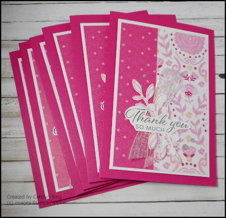 I have used a Melon Mambo card base. This is way out of my comfort zone using this colour but I really like the pretty look of the finished cards.